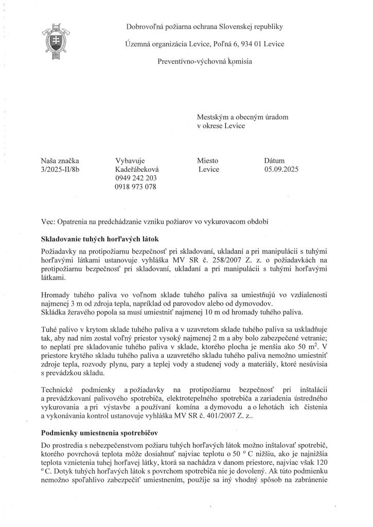 Opatrenia na predchádzanie vzniku požiarov vo vykurovacom období - Intézkedések a tüzek megelőzése céljából a fűtési szezonban.