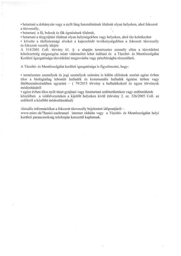 Vyhlásenie času zvýšeného nebezpečenstva vzniku požiaru / A fokozott tűzveszély idejére vonatkozó nyilatkozat 2