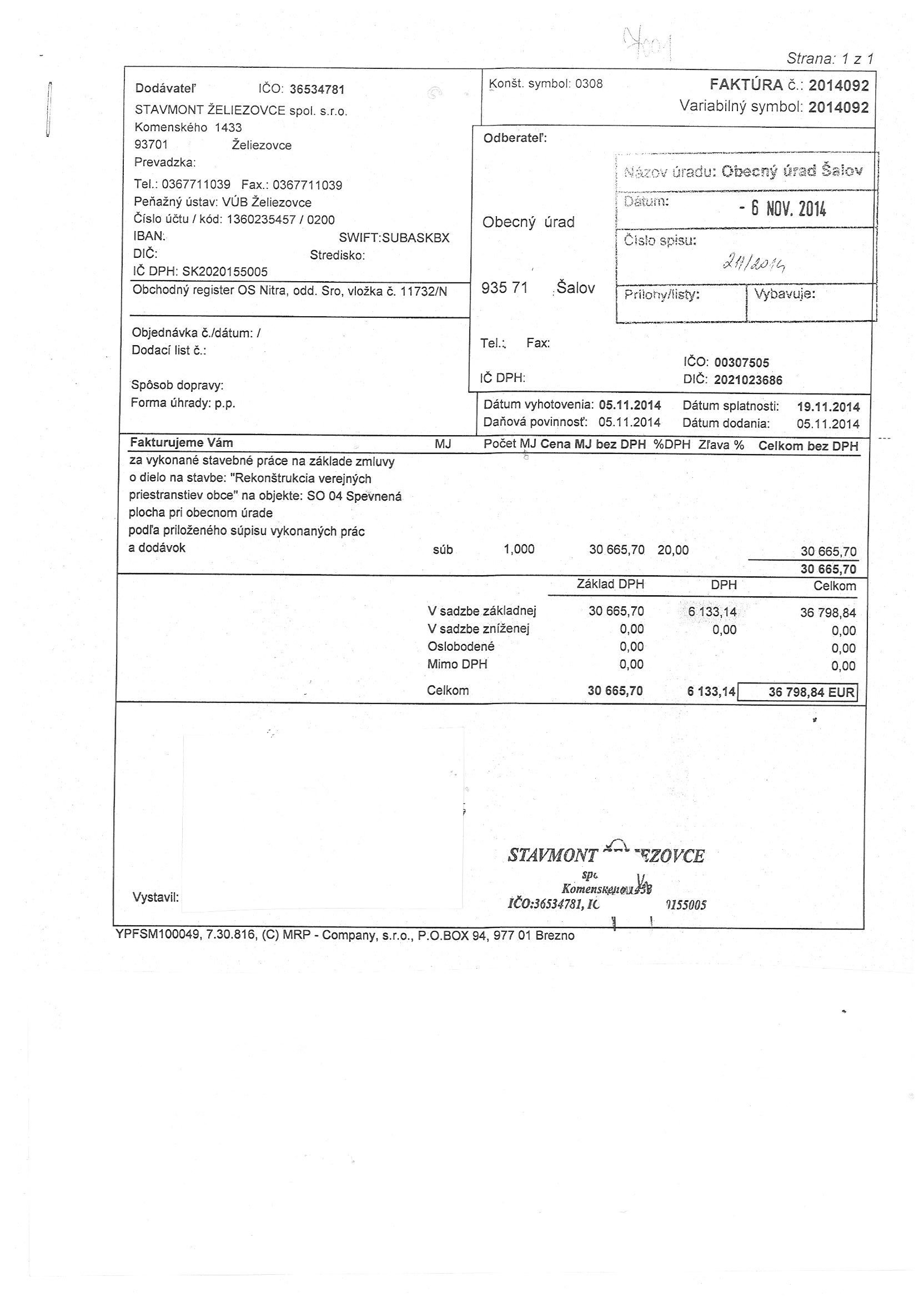 Detail faktúryč.: 2014092