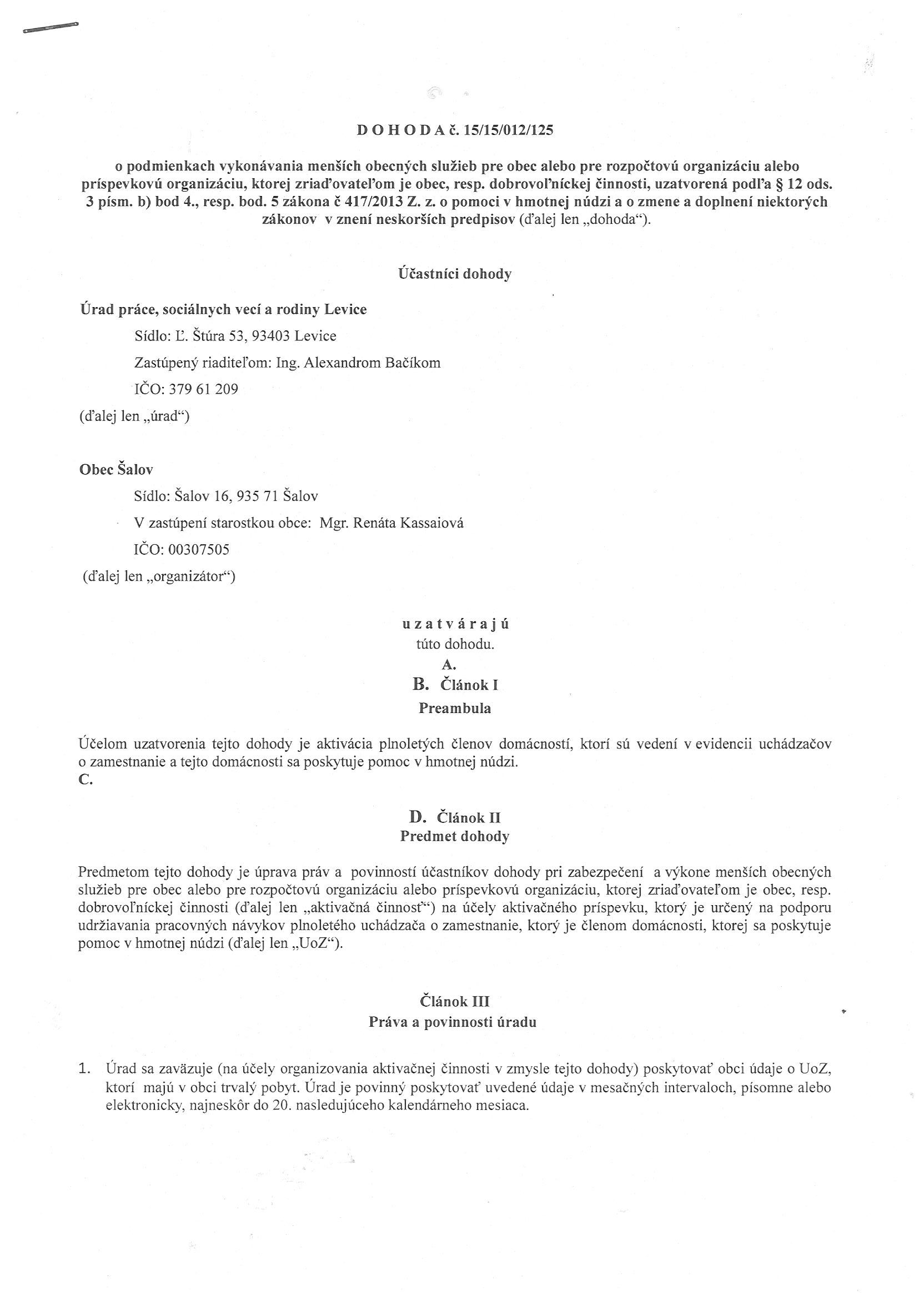 - 1. Zmluvná stranaObec Šalov, Obecný úrad, 935 71 Šalov č.16
